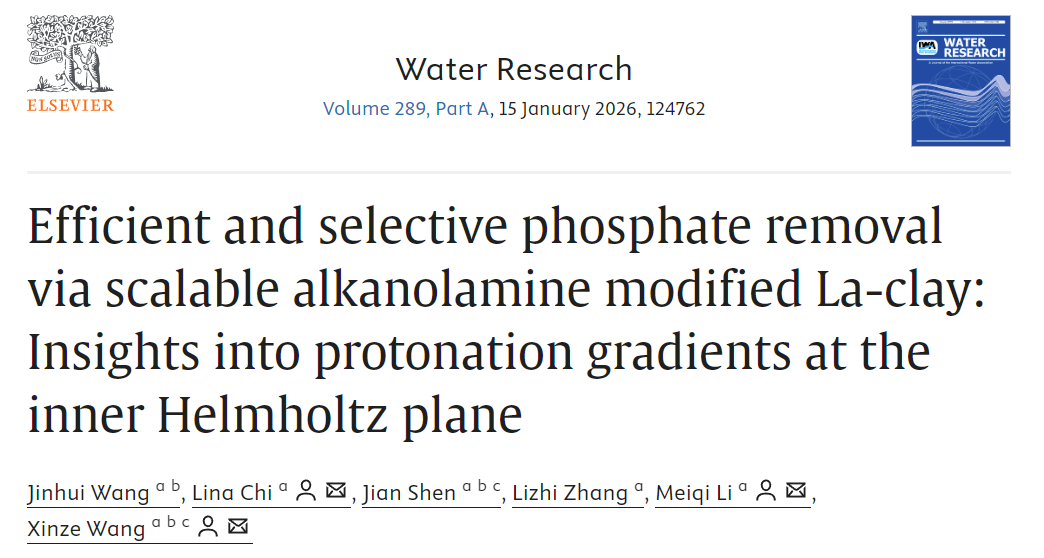 环院智慧|王欣泽团队WR发文揭示内亥姆霍兹平面质子浓度梯度驱动磷酸盐高效选择性去除