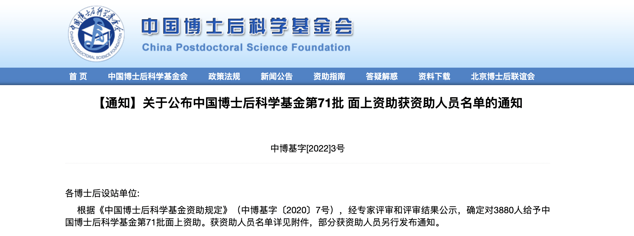 Beat365官方网站5名博士后获中国博士后科学基金第71批面上项目资助