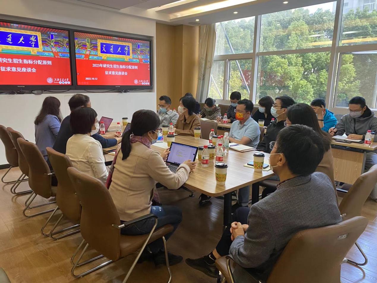 2022年10月12日下午,Beat365官方网站举行了研究生招生和培养工作座谈会。学院党委书记胡薇薇、院长耿涌、常务副院长曹心德、教学副院长刘萍,以及来自不同教学科研团队、不同岗位类型的资深教师和青年教师代表出席了座谈会。会议由刘萍主持,学院教务办、科研办、党政办的相关工作人员列席了本次会议。