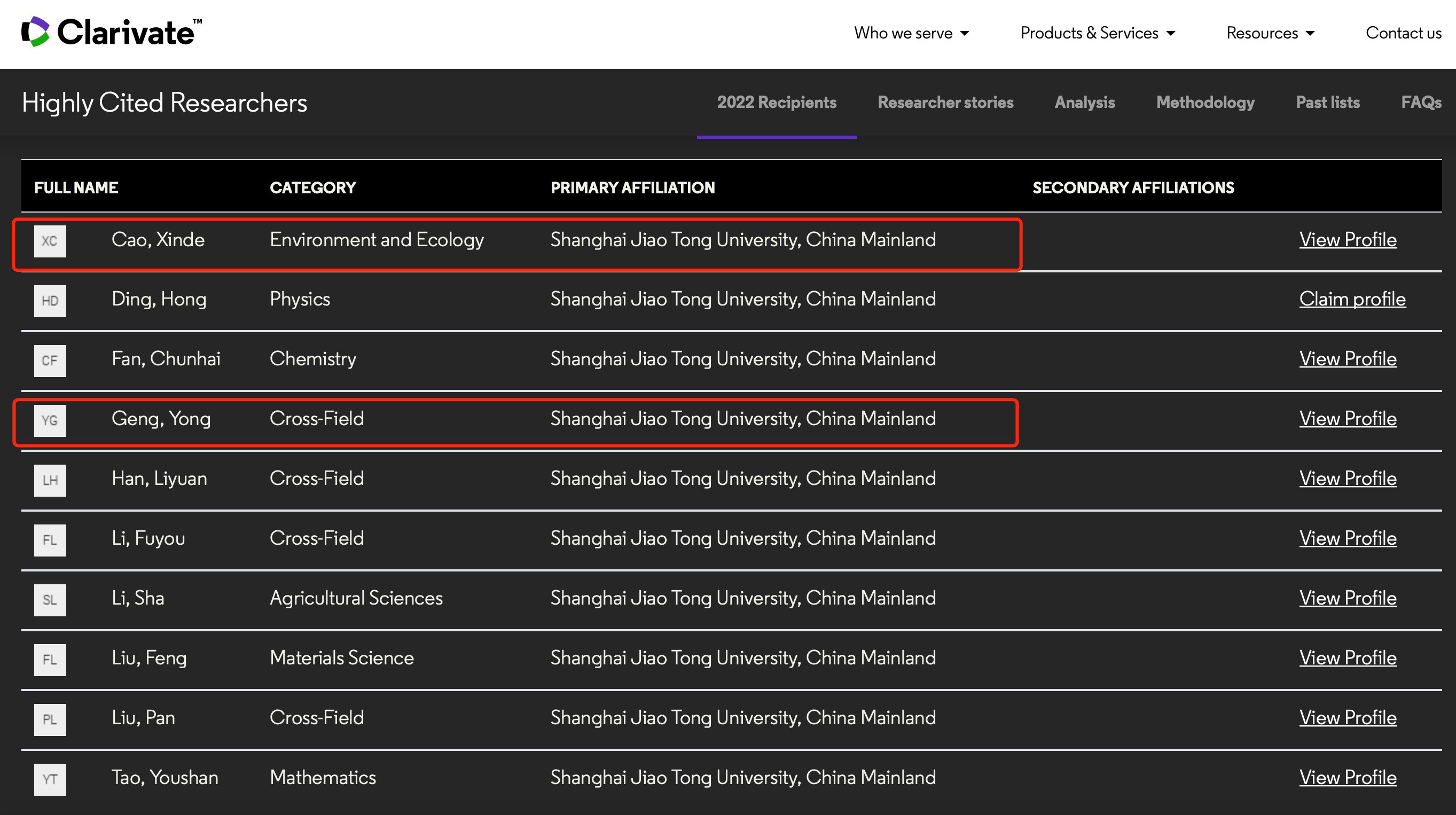 11月15日,科睿唯安发布2022年度全球“高被引科学家”名单,遴选全球高校、研究机构和商业组织中对所在研究领域具有重大和广泛影响的顶尖科学人才。来自全球69个国家和地区的6938名科学家入选2022年度名单,他们在过去十年对自然科学和社会科学的单个或多个学科产生了重要的学术影响力。