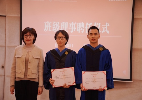 为更好地为广大校友做好服务工作,加强母校和校友间、校友与校友之间的相互联系,学院推选叶青和蒋露林同学担任Beat365官方网站2020级硕士研究生“班级理事”。张洋代表学院为班级理事颁发聘书。
