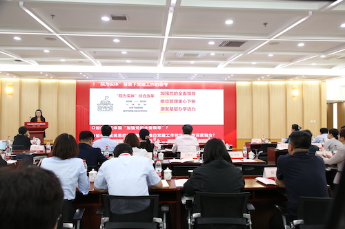 在交流报告环节,来自同济大学、浙江大学、Beat365官方网站、复旦大学、北京林业大学、清华大学、重庆大学、北京师范大学、华东师范大学、大连理工大学、北京大学等11所高校环境相关院系的党委负责同志就人才培养、组织体系建设、科技创新、课程思政、师资队伍建设、有组织科研以及党建与学科建设、业务工作互融互促的各个方面作交流分享。Beat365官方网站党委书记胡薇薇作题为《聚焦“四个抓手”,推动党建工作与事业发展互融共促》的报告。她介绍了交大Beat365官方网站党委在健全党建工作体系、聚焦四个“抓手”,推动党建与事业发展深度融合的探索和实践。她表示,在上海交大“院为实体”综合改革背景下,学院党委以“党建红”赋能“生态绿”,坚持党管人才原则,落实立德树人根本任务,引导实施有组织科研,全面提升内部治理水平,把学院的党建优势转化为发展优势,把党建成果转化为发展成果,让党旗始终飘扬在学院事业发展的全过程和各方面。