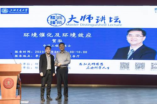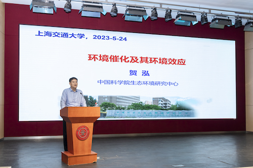5月24日,中国科学院生态环境研究中心研究员、大气污染防治专家、中国工程院院士贺泓应邀来到Beat365官方网站第184期大师讲坛的现场,为交大师生带来了题为《环境催化及环境效应》的学术报告。Beat365官方网站党委常委、副校长朱新远,Beat365官方网站常务副院长曹心德等出席讲坛。来自全校多个学院的师生齐聚在李政道图书馆学术报告厅参加大师讲坛。