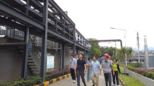 实践团的第一站来到位于茅台镇的贵州省龙头企业贵州茅台集团生态环保部参观了制作酒车间、中华片区污水处理厂、集团生态环保部调研该集团的绿色低碳发展现状。在制作酒车间,技术人员向实践团详细介绍了茅台集团的生产用水降温处理系统。该系统是茅台集团历经数年研发而成,系统共设置了数十个点位,主要由两大循环构成,每年至少可节约400万立方米的水资源。在中华片区污水处理厂,技术人员介绍了污水处理厂主要使用混凝沉淀、气浮、厌氧(UASB)、脱氮除磷(Bardenpho)、臭氧氧化、曝气生物碳滤池(BACF)、超滤(UF)等工艺。日处理污水量可达7000立方米,其中有生活污水3000立方米,生产污水4000立方米。