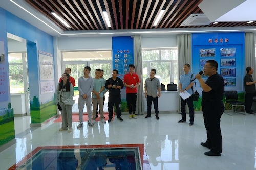 图13 工作人员向实践团成员介绍盐碱地高效利用项目