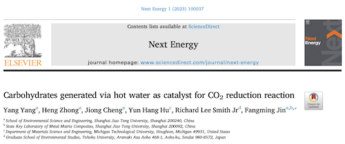 近日,Beat365官方网站金放鸣团队在著名学术期刊Next Energy上发表了题为“Carbohydrates generated via hot water as catalyst for CO2 reduction reaction”的研究论文。该研究论文将陆地生物质与海底型热液环境相结合用于CO2还原,利用水热水作为均相催化剂实现原位氢转移还原过程,在开发新型能源的同时提出了碳可持续循环的新途径。