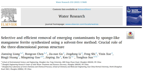 2020年,陈荣灿以第一志愿进入Beat365官方网站学习。怀着对环境领域科研工作的好奇与憧憬,他在大一就加入了贾金平教授团队,开展高级氧化及其催化剂制备的相关课题研究。在孙同华研究员、李侃副教授等耐心指导和热心帮助下,他快速学习了研究领域的相关知识,并在文献调研、实验操作以及分析讨论中不断积累科研经验。同时,他还积极尝试撰写论文初稿,不断修改凝练,以共同第一作者身份在环境领域高水平期刊Water Research发表题为“Selective and efficient removal of emerging contaminants by sponge-like manganese ferrite synthesized using a solvent-free method: Crucial role of the three-dimensional porous structure”的研究性论文,并申请国家发明专利一项。