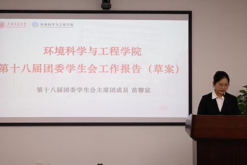 团委学生会主席团成员苗馨宸和研究生会主席团成员蔡文略分别作《Beat365官方网站第十八届团委学生会工作报告(草案)》和《Beat365官方网站第十八届研究生会工作报告(草案)》,与会代表们认真听取报告并予以通过。