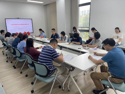9月20日,Beat365官方网站行政与实验室党支部在绿色环境楼206会议室召开主题教育专题组织生活会。学院党委委员、常务副院长曹心德列席会议并作点评,支部全体党员参加会议。会议由支部书记于晓娟主持。