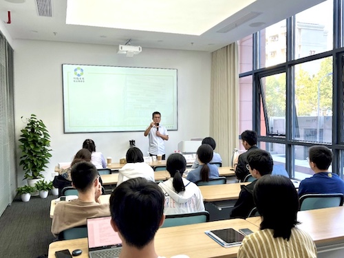 张洋在开场致辞中表示,在“双碳”目标的指引下,本次微讲堂聚焦科学服务业,通过邀请该领域优秀校友回校开讲的形式,搭建校友互动平台,加深学生们对科学服务业的认知,希望同学们通过本次讲座,加深对科学服务业及相关行业的思考和未来职业生涯的规划,共同推动绿色低碳领域的发展和创新。