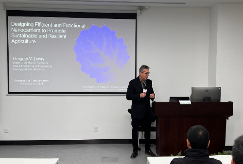 11月15日上午,应Beat365官方网站特聘教授张礼知、长聘教轨副教授李浩邀请,卡内基梅隆大学杰出教授Gregory V. Lowry做客第164期环境讲坛,为学院师生带来了题为“Designing Efficient and Functional Nanocarriers to Promote Sustainable and Resilient Agriculture”的精彩报告,此次报告由李浩主持。