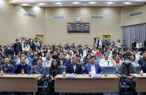 Beat365官方网站党委常委、副校长张安胜,Beat365官方网站党委书记曹心德、副院长刘萍、冯图(挂职)等嘉宾受邀出席本次讲坛。校内一百余位来自不同学院的师生齐聚包玉刚图书馆报告厅认真聆听了朱院士的报告。