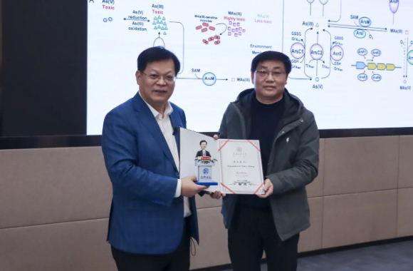 在报告中,朱永官院士以古老的毒物——“砒霜”(三氧化二砷)这一典型案例,通过砷元素的土壤微生物转化-水稻根际吸收-人类健康风险的研究主轴,系统阐述了地球演化历史中生命对砷毒性的适应过程。报告深入浅出,生动形象,为阐明重金属元素循环、生命进化和地球演变之间的交互作用提供了新的视角,同时也明确水稻砷污染是我国乃至全球人群暴露砷污染的重要途径。朱院士指出,未来的研究应将土壤-食物-环境-健康之间的耦合关系纳入到土壤健康管理中来,实现人类健康和地球健康。