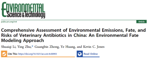 环院智慧|朱樱副教授ES&T发文首次全面评价我国2010-2020年间兽用抗生素环境排放、归趋和耐药性演化风险