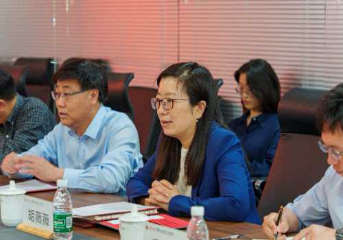 胡薇薇代表学校对兰建彬一行来访表示欢迎。她简要介绍了学校的基本情况,希望双方能够进一步加强合作,提升人才培养、科学研究的深度和广度,共同为国家双碳战略提供有力支撑。