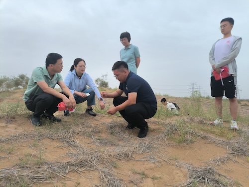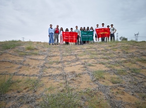 开营仪式后,实践团前往沙漠进行考察。宁夏拥有近70年的治沙历史,实现了让沙漠倒退20余公里的壮举,为世界贡献了中国经验。师生团队在现场对人进沙退的宁夏治沙成果表示惊叹。