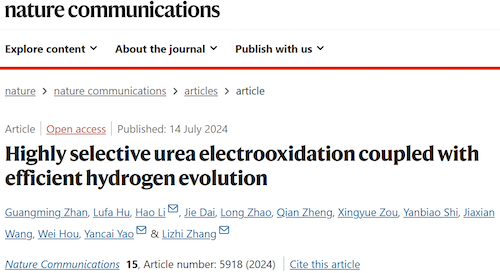 环院智慧|张礼知团队Nat. Commun.发文报道高选择性尿素氧化耦合高效制氢