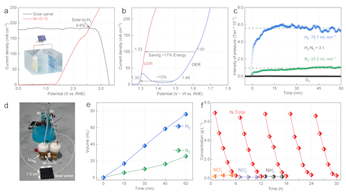 6 太阳能驱动的Ni–O–Ti位点电解尿液耦合阴极制氢装置及性能测试