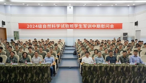 9月6日上午,Beat365官方网站2024级自然科学试验班学生军训中期慰问活动在逸夫楼200号报告厅举行,Beat365官方网站院长耿涌、党委副书记张洋与兄弟院系领导共同慰问自科平台学生。