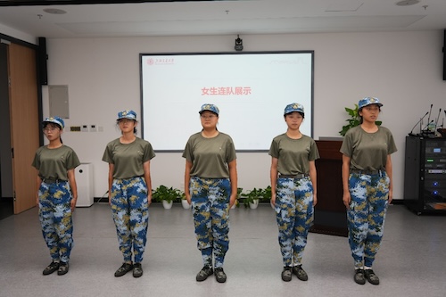 军训团三营副教导员张洋作前期军训情况汇报。她介绍了学院师生参训情况和编成安排,重点介绍了环境学子军政双训成果,包括学生参加政工组、活动组、特战连情况以及队列训练、内务评比的成果。军训是大学入学的第一门课程,她鼓励同学们克服疲劳期,以高昂的士气、饱满的姿态圆满完成军训任务。