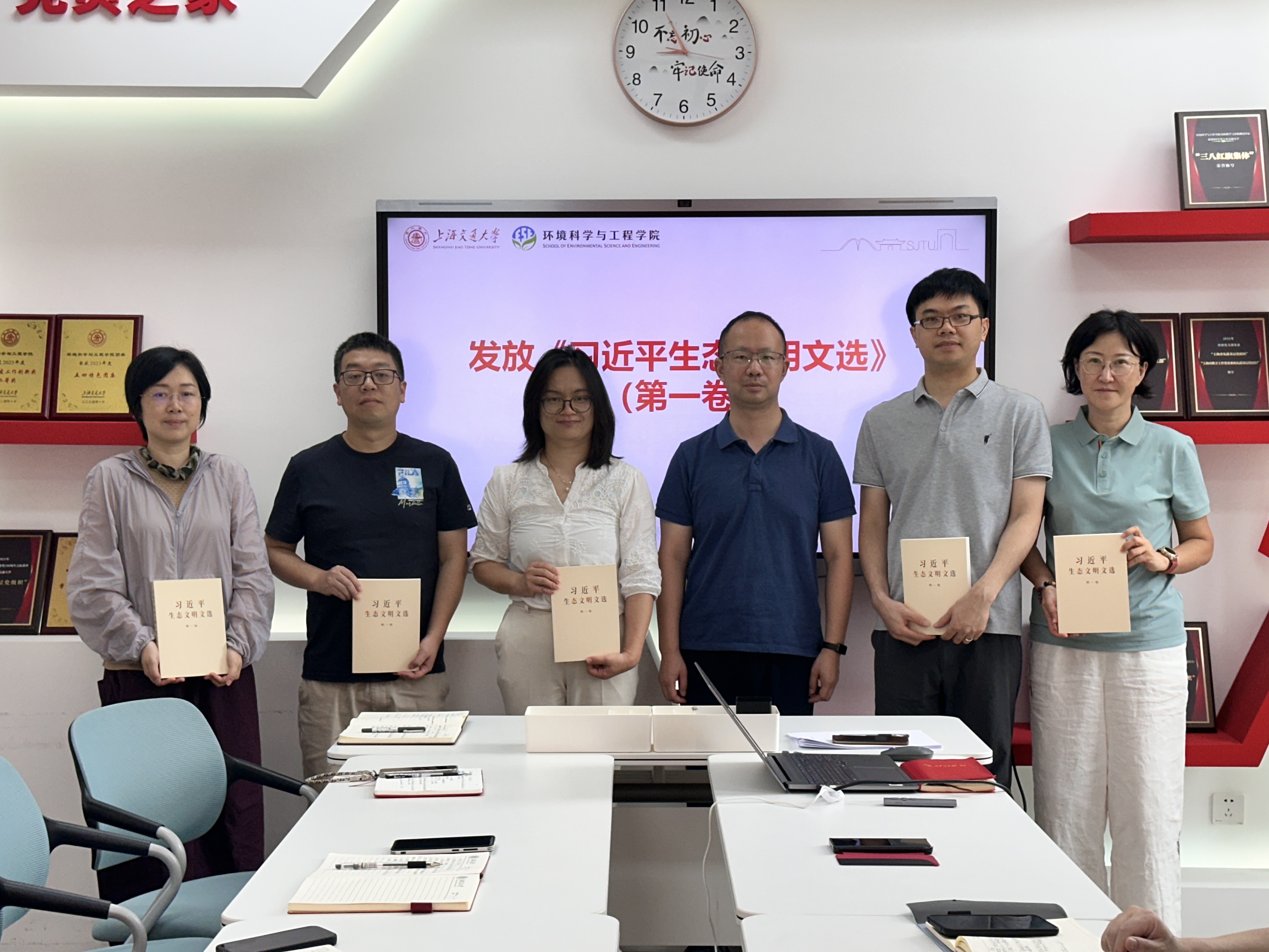 会上,郑浩代表学院党委给各教工党支部书记发放《习近平生态文明文选》第一卷,强调在“两山”理论提出20周年之际,各党支部要进一步加强理论学习,牢固树立和践行“绿水青山就是金山银山”的理念,始终坚守环境人的初心使命,为实现中华民族永续发展贡献智慧和力量。