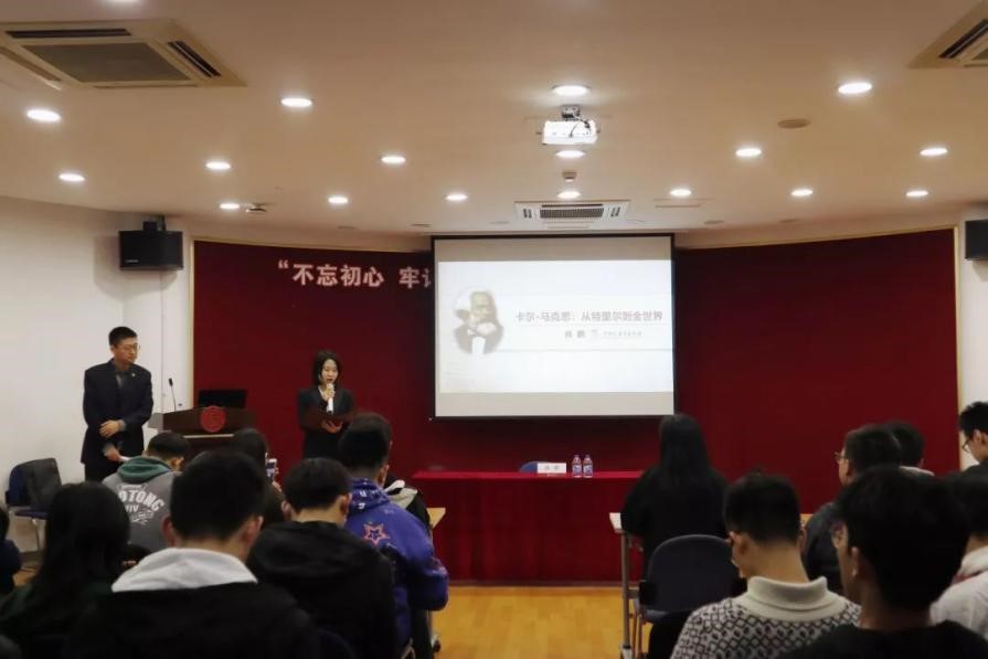 11月23日上午,Beat365官方网站Beat365官方网站与材料学院、致远学院青年马克思主义学校第七期入党积极分子培训班第四次专题授课在徐祖耀楼姚征报告厅顺利举行。此次授课嘉宾为上海市委党校哲学教研部副教授肖鹏老师,讲座主题为《卡尔马克思:从特里尔到全世界》。来自Beat365官方网站、材料学院和致远学院的87名入党积极分子到场聆听。此次嘉宾授课由Beat365官方网站核心组邓洁主持。