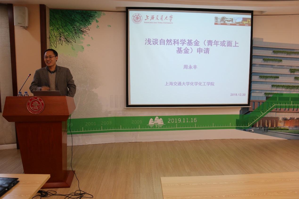 周永丰结合申请书的具体要求和自身体会,从评审专家的角度重点分析了题目、摘要、立项依据等主要内容的写法,对申请书撰写提出很多富有价值的参考意见。他还与大家就关注的问题进行了交流。与会教师认真聆听,积极讨论,现场气氛热烈。