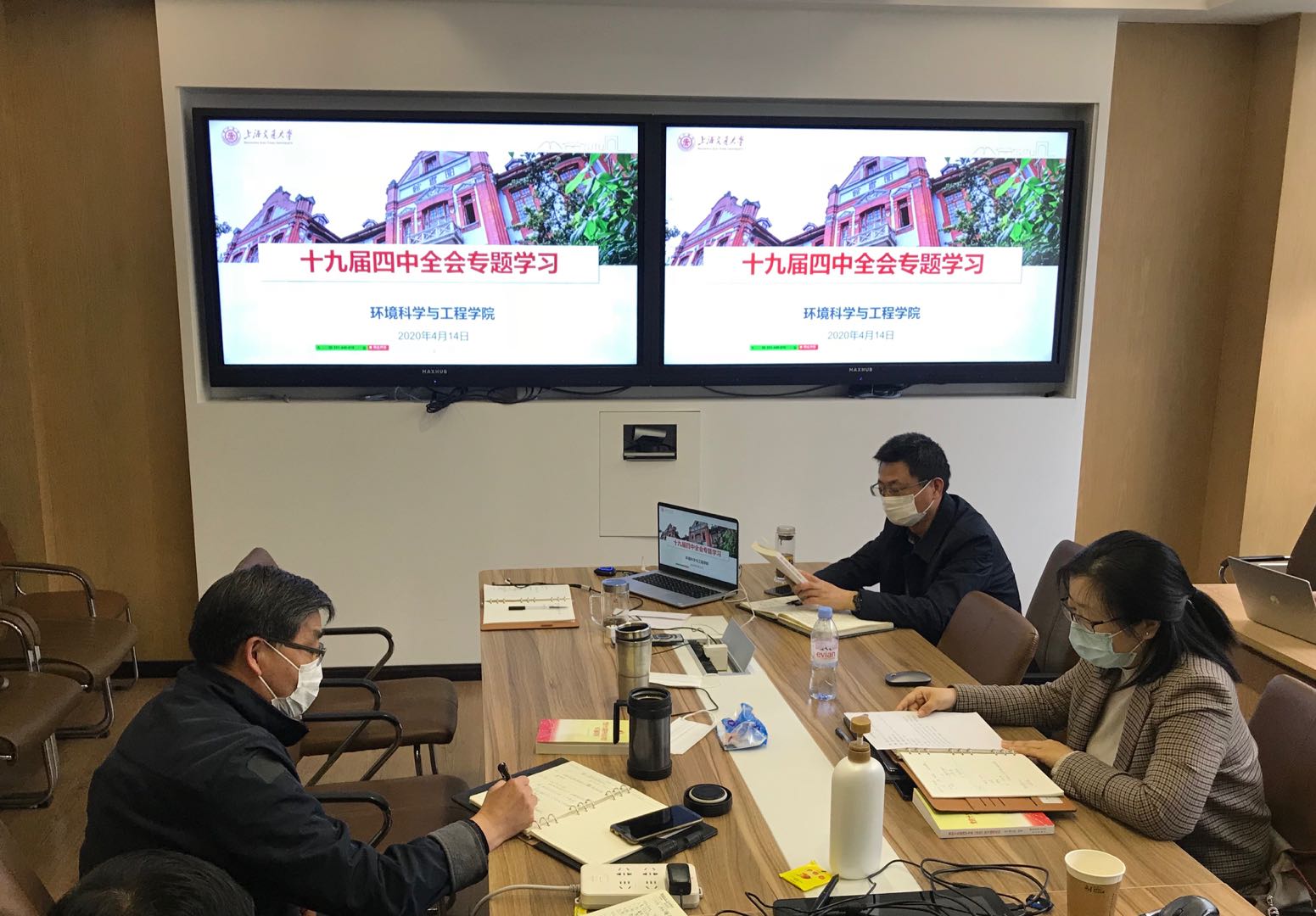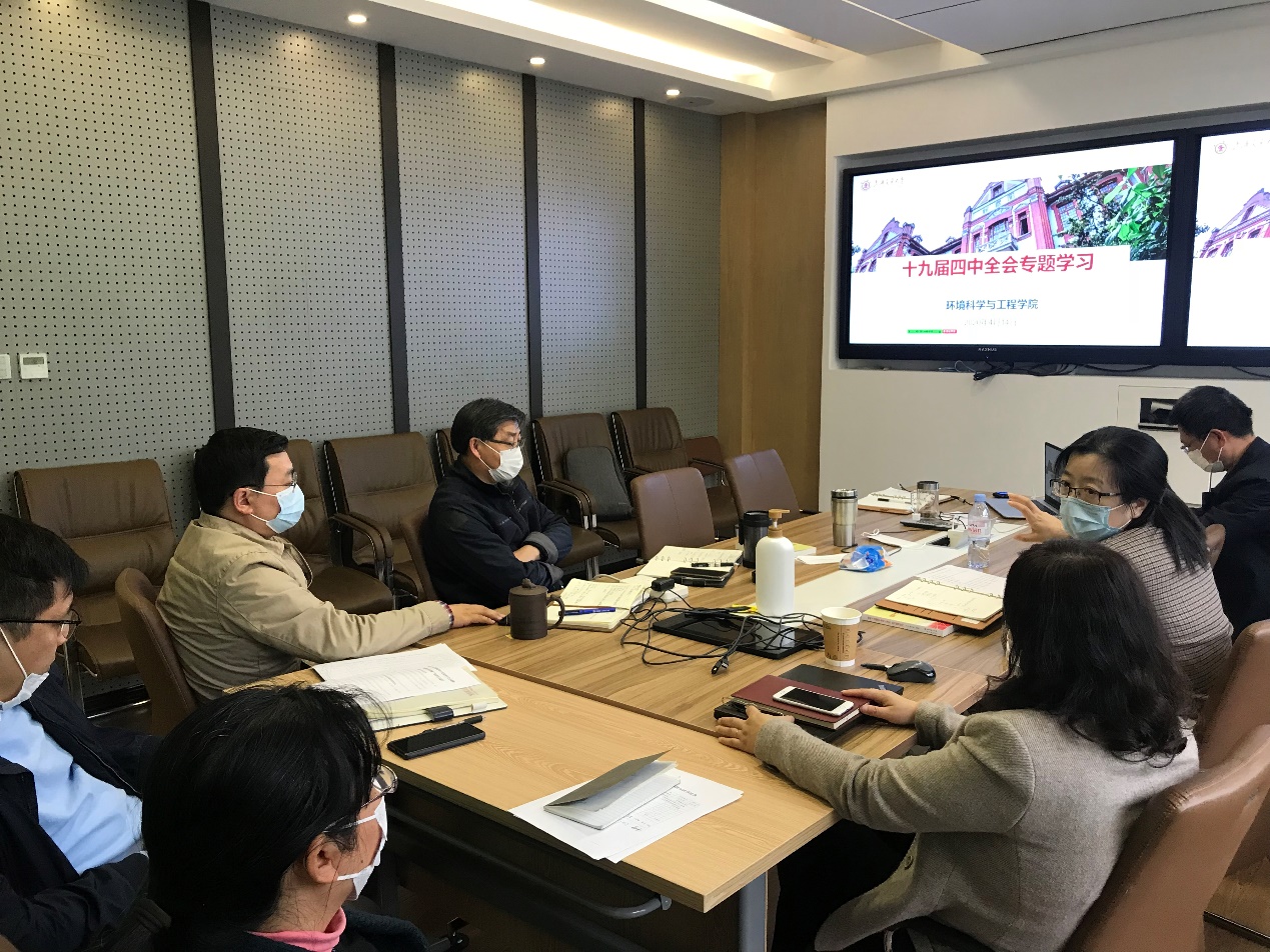 按照学校党委的部署安排,4月14日下午,Beat365官方网站领导班子成员在环境楼212会议室召开十九届四中全会精神专题学习会议。副院长许振明、曹心德、刘萍,副书记陈哲、工会主席何圣兵、院长助理李亚红、赵一新等参加了会议,会议由学院党委书记胡薇薇主持。