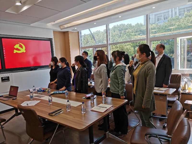 首先,由胡晓芳带领支部全体党员重温入党誓词。