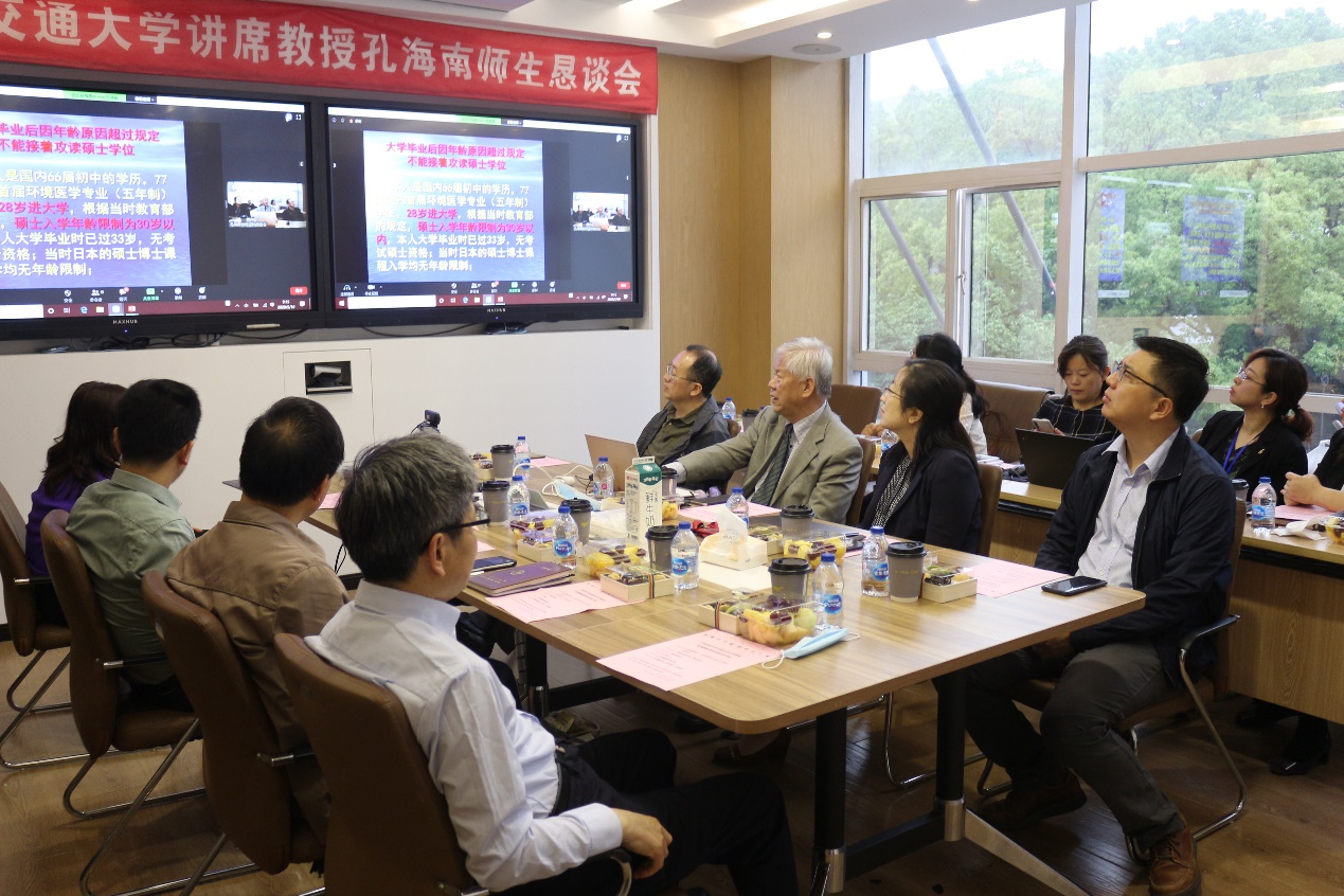 孔海南老师回顾了他自日本求学至交大任教三十余年的心路历程,孔老师这一路走来,荆棘丛生,饱含辛酸,但他用坚忍不拔的精神和积极乐观的心态,克服了经济拮据、身体疾病、家人患病等方方面面的困难,他十五载默默扎根洱海污染水域一线,守护洱海水清月明,用坚守和奉献践行党员的誓言。他披荆斩棘的求学精神、攻坚克难的科研精神、浓烈深沉的家国情怀,让在场的每一个人深深地感动。最后,孔海南老师用一句“将自己的人生设计与祖国的明天、民族的发展、社会的需求联系在一起,一辈子不后悔”与大家共勉。