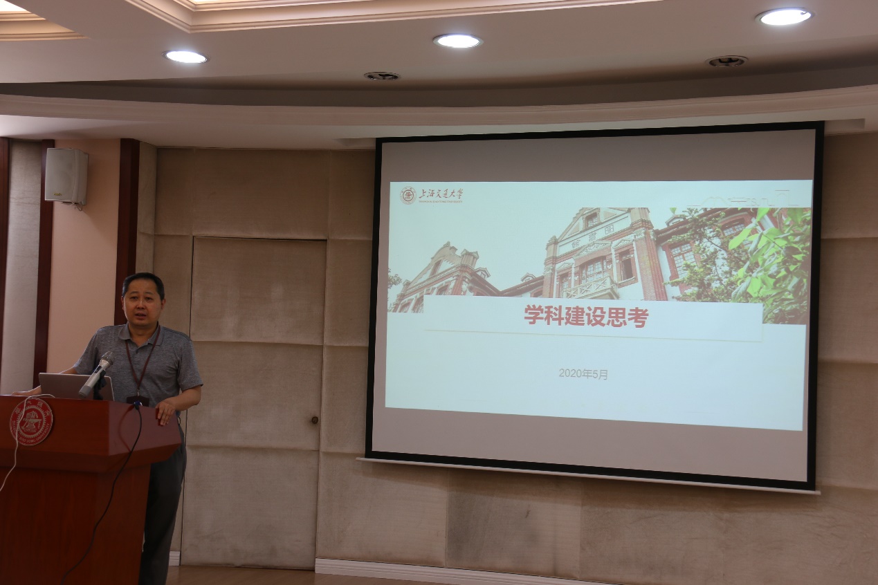 耿涌院长梳理了国际国内环境学科的发展态势,结合新冠疫情造成的影响,对学院学科发展进行了分析。他提出三点主要思考并进行了对标分析:一是学科发展怎样更好的和国家导向、战略需求相一致,对标未来国家环境学科发展思路,细致分析了学院现有学科方向和国家环境学科发展的契合程度;二是学科发展怎么更好的和学校发展的新增长点相结合,结合未来交大环境学科发展的目标,怎么样更好依托学校现有优势,更多地融入时代发展的大格局;三是结合学院的现状,找到在发展建设中的成效和不足,针对不足给出了一些建议性举措。