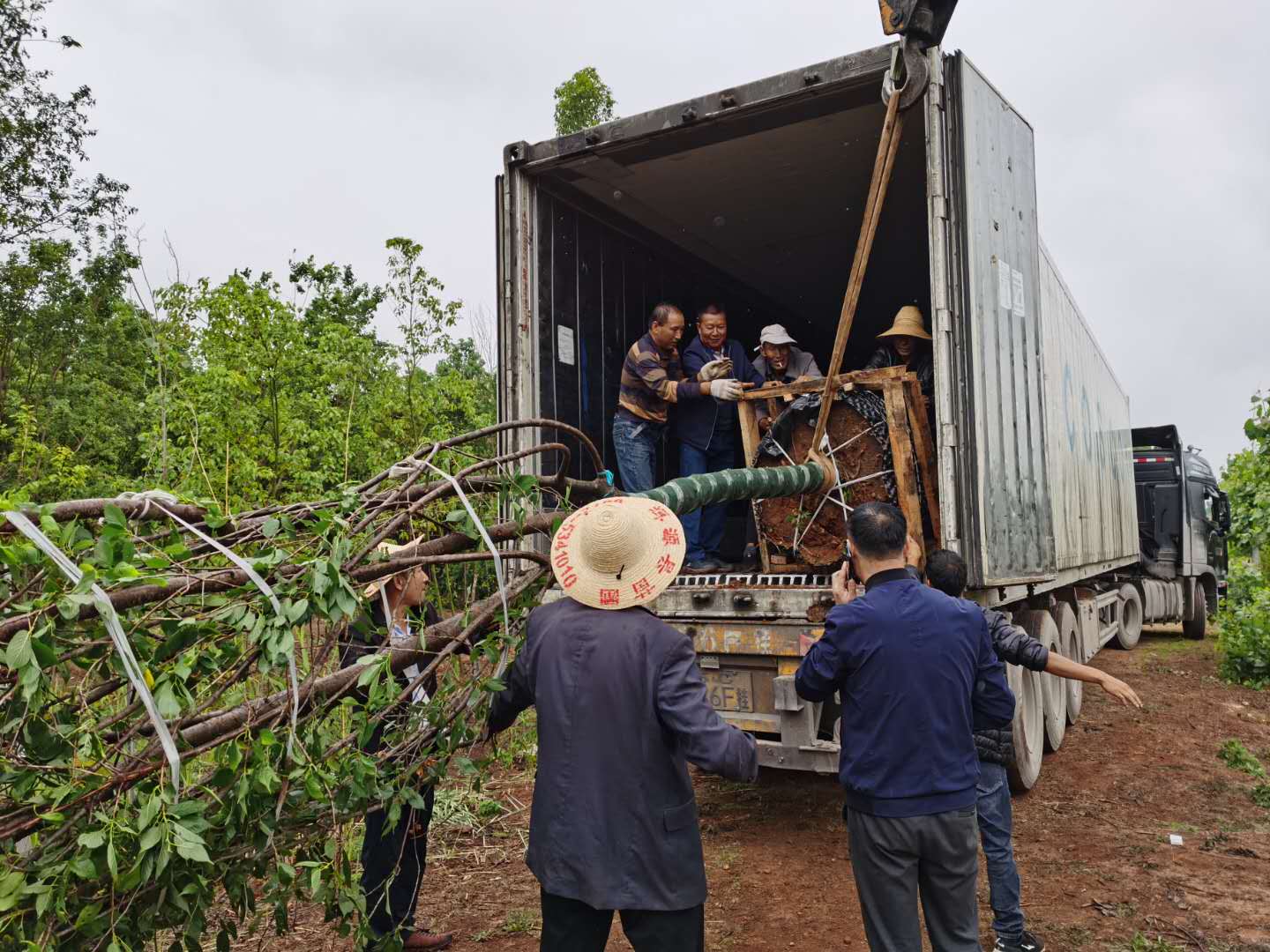 5月21日,洱源县委书记李洋同上海交大Beat365官方网站孔海南教授挑选滇樱花树苗,建议立即启运并在6月份之前进行移栽。5月22日,大理大学科技处处长李辉与孔海南教授挑选云南早樱花成树。5月27日,洱源大雨,首批30棵滇樱花树装车出发,目的地:上海。5月31日,一辆从大理洱源县来的冷链货车到达上海交大闵行校园,首批滇樱花树苗成功运抵,立即进行剪枝移栽。