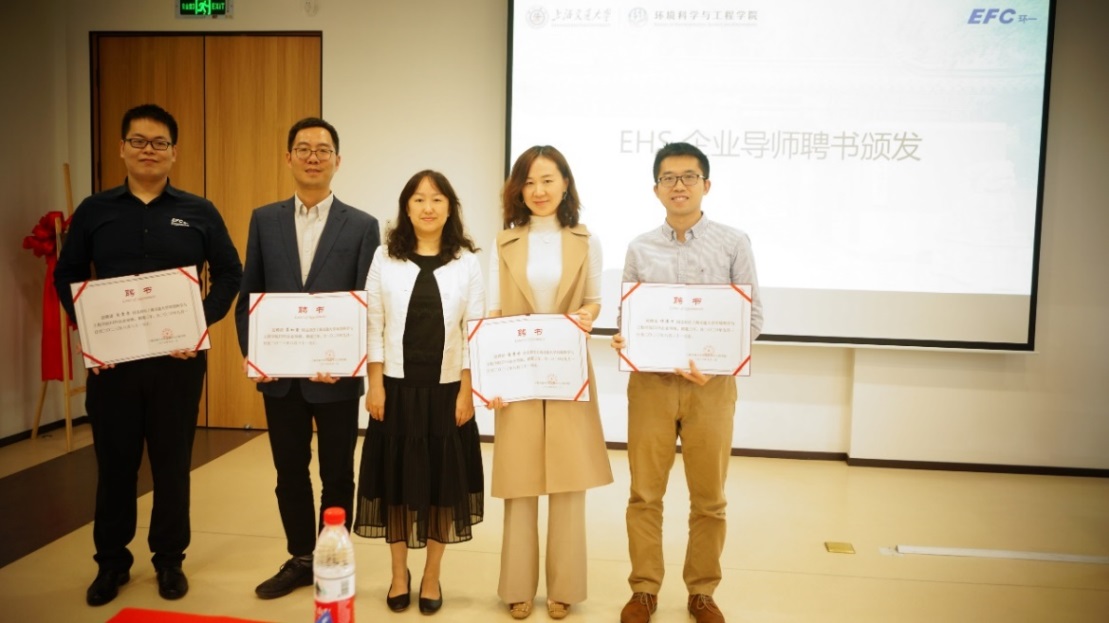 随后,举行了EHS实践教学基地揭牌与EHS企业导师聘书颁发仪式。