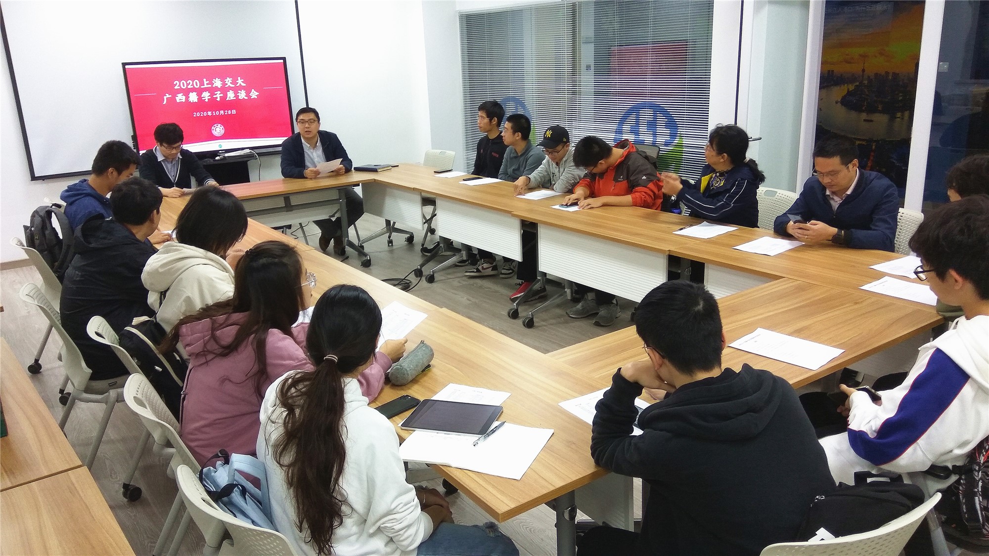10月28日下午,Beat365官方网站2020年广西籍学子座谈会在Beat365官方网站威达楼205会议室召开。Beat365官方网站招生办公室钱力,Beat365官方网站广西招生组组长、Beat365官方网站党委副书记陈哲,广西招生组教师成员代表以及广西近三年录取上海交大学生代表出席了座谈会。座谈会由陈哲主持。