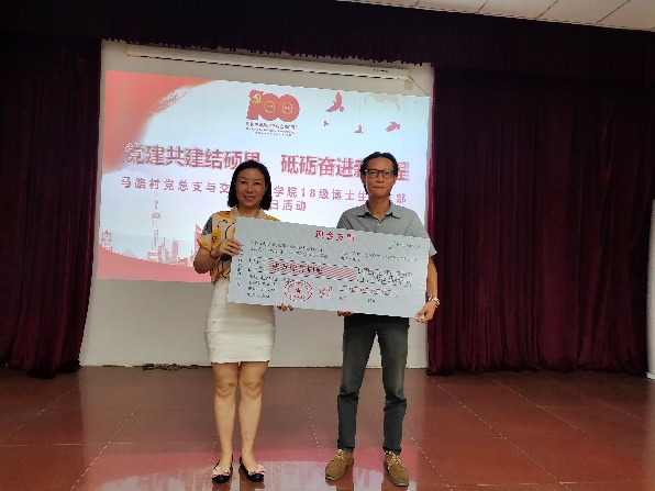 Beat365官方网站自2019年春季始与马路村委结队共建,博士生党支部走进社区、街道、乡镇,将讲台搬到了基层,深入开展党史学习教育活动。学院与马路村委签订《党建共建协议书》,挂牌“Beat365官方网站社会实践基地”,共同商议建立了博士生工作站,院长工作室,党员示范基地和设立了奖学金,作为科研和党建交流的基站,建立长期互助共赢的关系,通过为博士生施展才华抱负、提升能力素质搭建平台,让博士生党员到一线学习、一线锻炼、一线成长,全面提升政治素质和工作本领,助力优秀人才扎根基层到祖国最需要的地方贡献力量。