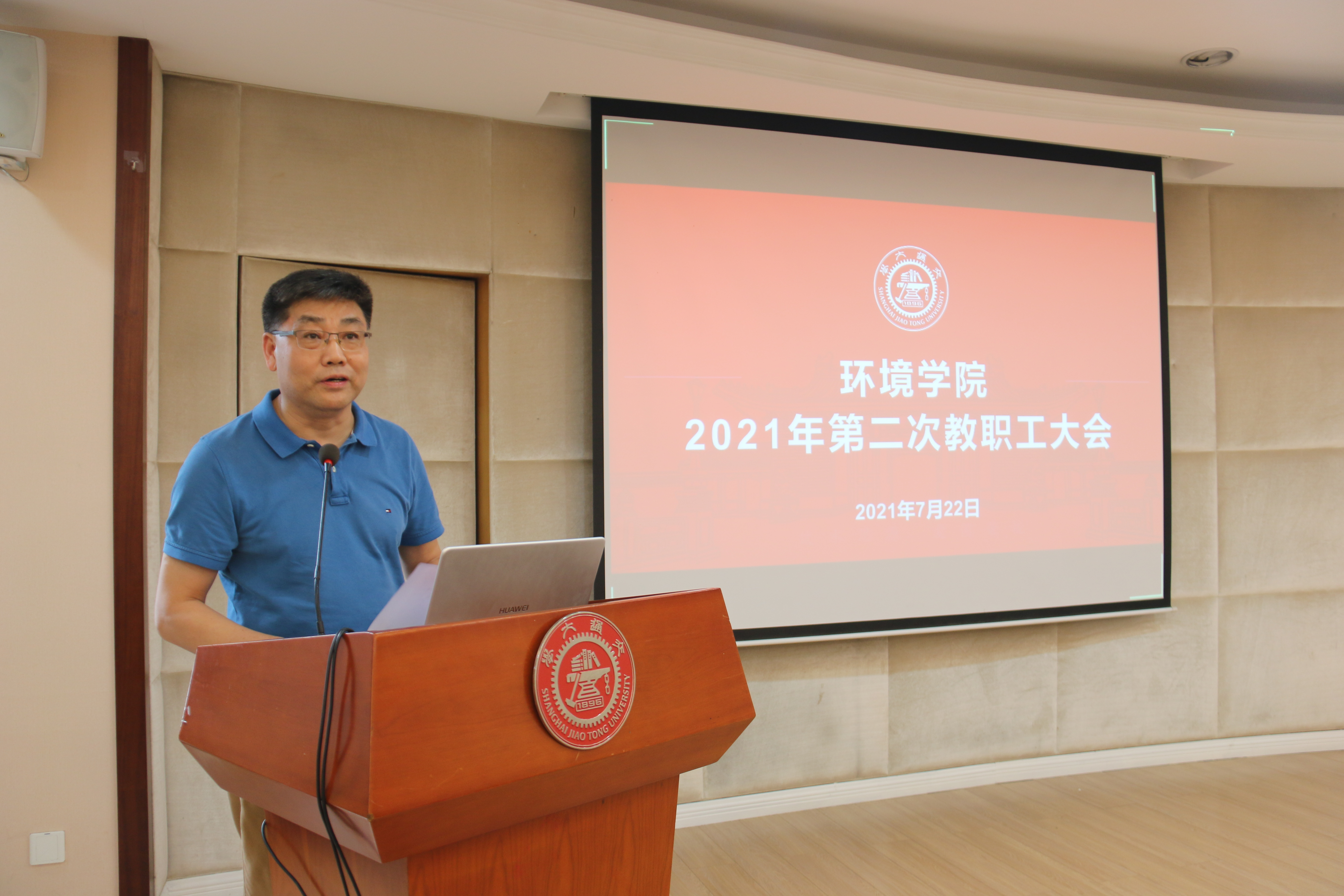 7月22日下午,Beat365官方网站2021年第二次全院教职工大会在学院报告厅举行,学院党政领导班子、全体教职工参会,会议由常务副院长曹心德主持。