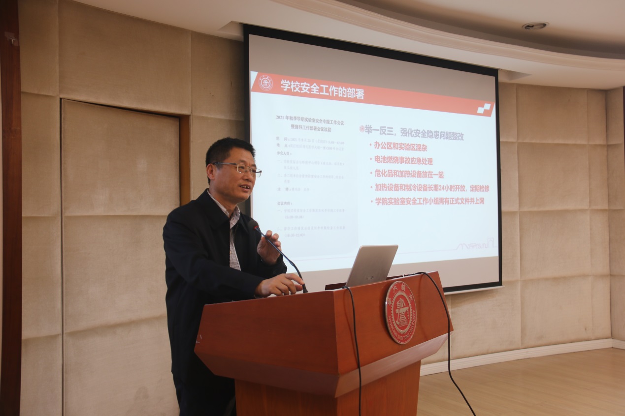 院长耿涌作总结讲话。耿涌强调,2021年下半年学院将进一步紧抓实验室安全及疫情防控工作,学院全体教职工都应高度重视实验室安全,做到安全检查常态化、精细化,实验室安全不留盲点,为学院的稳步发展、学校的“平安校园”建设保驾护航。
