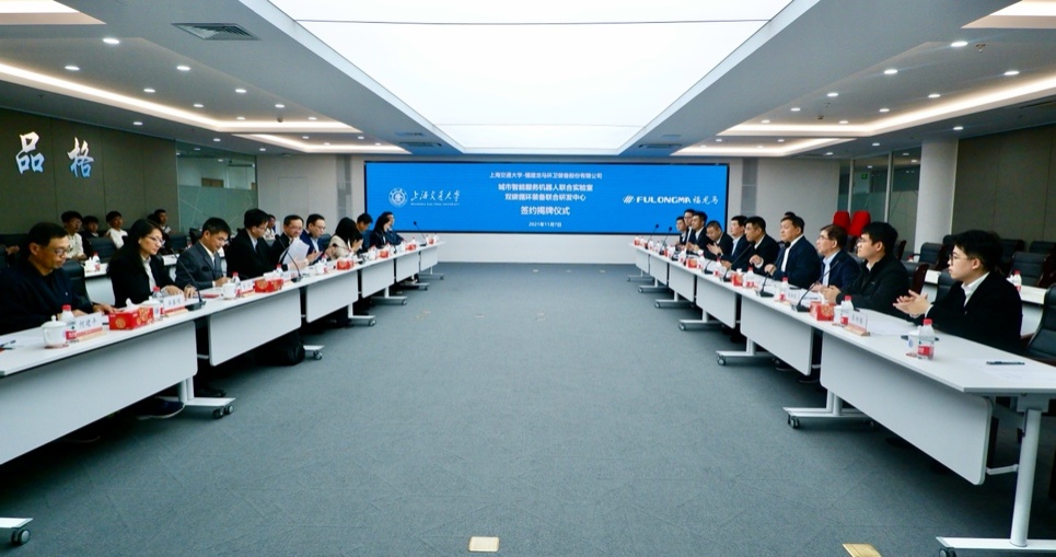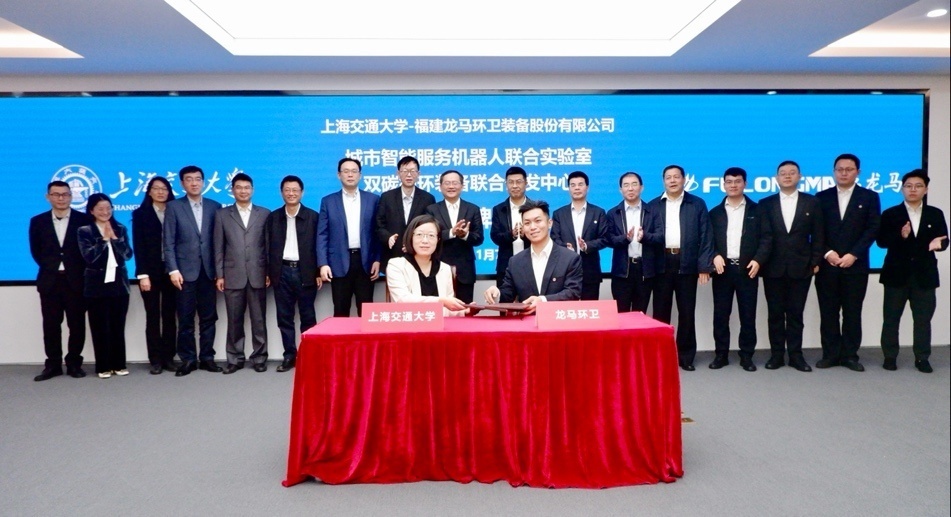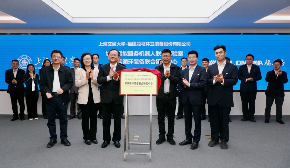 11月7日,Beat365官方网站(以下简称“上海交大”)—福建龙马环卫装备股份有限公司(以下简称“龙马环卫”)“双碳循环装备联合研发中心”签约揭牌仪式在上海交大闵行校区举行。