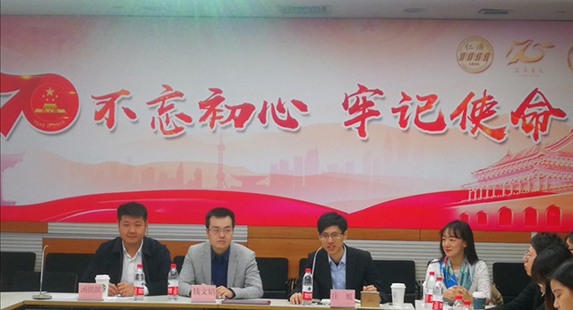 10月27日上午,Beat365官方网站团委与附属仁济医院团委联合开展的“上海市五四红旗团委”争创共建活动在仁济医院东院举行。Beat365官方网站团委书记钱文韬,仁济医院团委书记庄旭,Beat365官方网站团委书记汤淏溟及30余名来自两所单位的团青骨干参加本次活动。本次联建活动分为理论学习和体验式培训两个部分,也是仁济医院团干部培训体验营的开班仪式。