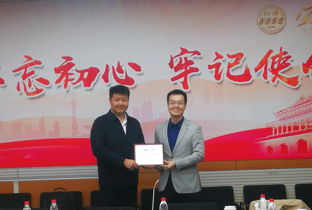 庄旭首先代表附属仁济医院团委对钱文韬的莅临表示感谢,同时也对Beat365官方网站同学们的到来表示热烈欢迎,希望两院团委能够通过本次联建活动,深挖专业互补优势,在环境与健康领域开展长期合作。钱文韬代表校团委为Beat365官方网站颁发共建纪念牌。