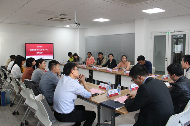 10月18日下午,“2019年度上海市五四红旗团委”争创(第六组)第一次互访活动在交大闵行校区举行,来自15所高校的团委工作负责人齐聚Beat365官方网站,共同交流分享高校团委工作的好经验、好做法、好举措。校团委书记钱文韬,华东理工大学团委书记侯宇,Beat365官方网站党委书记胡薇薇,Beat365官方网站党委副书记陈哲参加了本次互访活动。