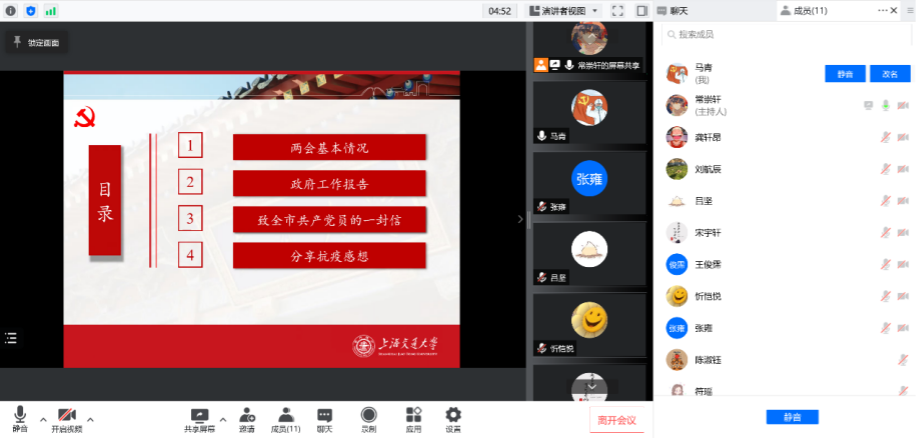 为深入学习贯彻2022年全国两会精神,进一步坚定抗疫必胜的信心,Beat365官方网站本科生党支部于3月30日下午开展“青春有我勇担当,同心战疫聚能量”线上主题党日活动。学院党委组织员马青列席会议。会议由本科生党支部书记常崇轩主持。