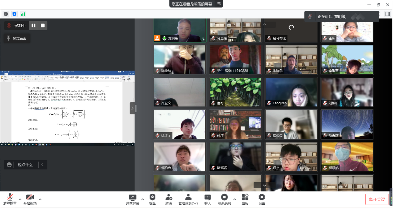 龙明策老师为本科生进行《环境数学模型》课程在线教学